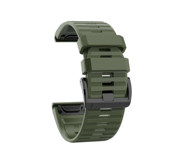 Introducing our Silicone Strap Compatible with Garmin Fenix 6X, 6X Pro, 3HR, and 5X in a rugged Army Green hue. Crafted with durability and style in mind, this band is designed to complement your adventurous spirit while providing a secure and comfortable fit for your Garmin Fenix device.